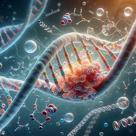 The image is an AI representation of RNA Polymerase II transcribing mRNA from DNA.